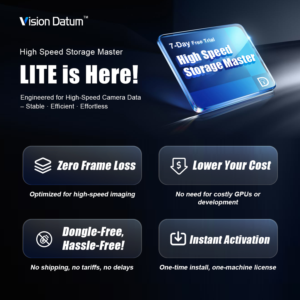 High-speed storage software is a complex machine vision software specially designed for high-speed image acquisition. It adopts multi-threaded and highly synchronized memory management technology. It can store the massive data collected by high-speed cameras in real-time and non-destructive storage disk arrays and other media. According to actual application needs, it can be exported as images or video files in multiple formats. When users use computer hardware with sufficient performance, they can record video data streams and original image data without losing frames at the maximum frequency of the camera, ensuring that massive data is not lost during storage.